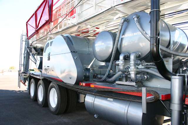 Known in the oilfield as the "Cadillac" of workover rigs, this unit is incredibly strong and durable. Normally configured with a 106 foot 300,000 pound mast rating, this rig is capable of servicing wells up to 18,000 feet. In today’s oilfield when it comes to working on non-traditional well bores this unit is second to none.