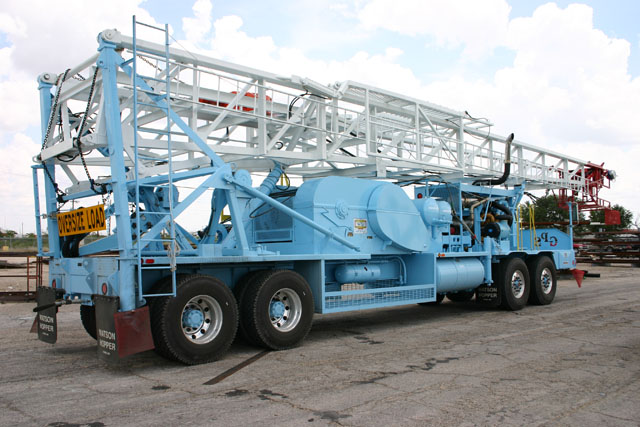 This unit is extremely popular in areas where the work is 8,000 foot or less and spacing of wells presents a challenge. This unit is most popular in the California market. Very easy to rig up and maneuver in tight locations.